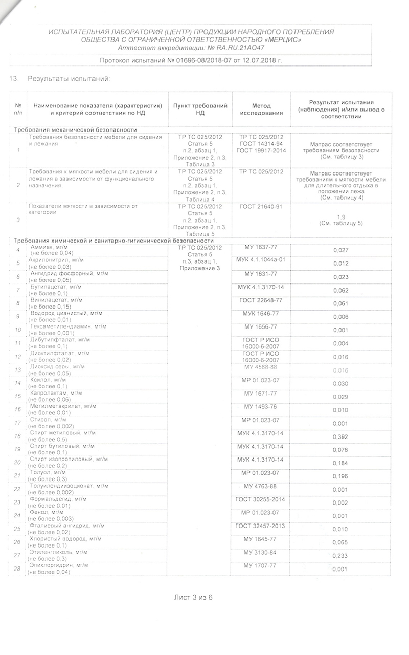 Состав матраса